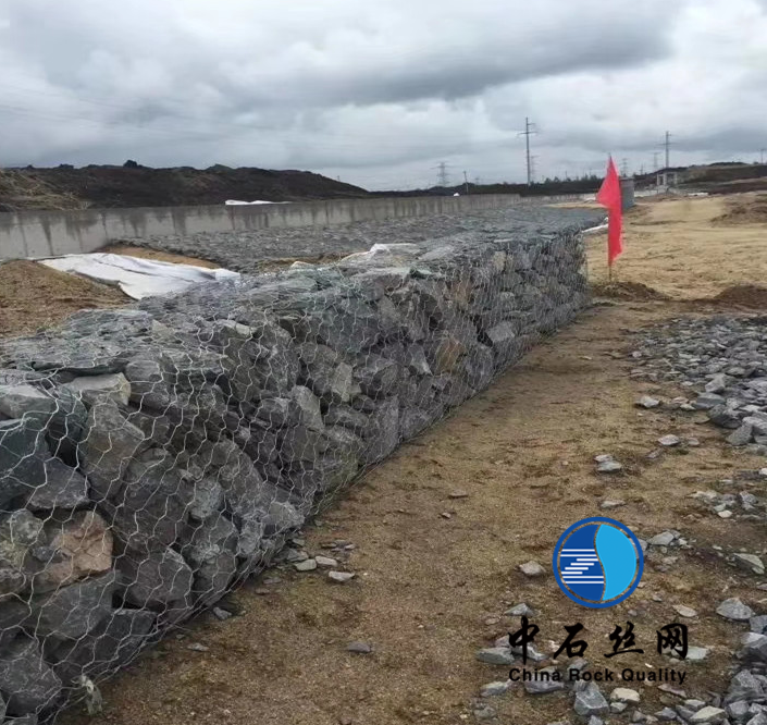 鉛絲籠是由高抗腐蝕、高強度、具有延展性的低碳鋼絲或者包覆PVC的以上鋼絲使用機械編織而成,根據ASTMA975和EN10223標準,所使用的低碳鋼絲直徑根據工程設計要求而不同。一般介于2.0-4.0mm之間,鋼絲的抗拉強度不少于38kg/m2,金屬鍍層重量一般高于245g/m2石籠網片的邊緣線直徑一般要大于網線直徑。其雙線絞合部分的長度不得小于50mm.以保證絞合部分鋼絲的金屬鍍層和PVC鍍層不受破壞。